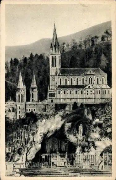 Ak Lourdes Hautes Pyrénées, Grotte, Basilika