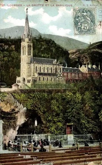 Ak Lourdes Hautes Pyrénées, Grotte, Basilique