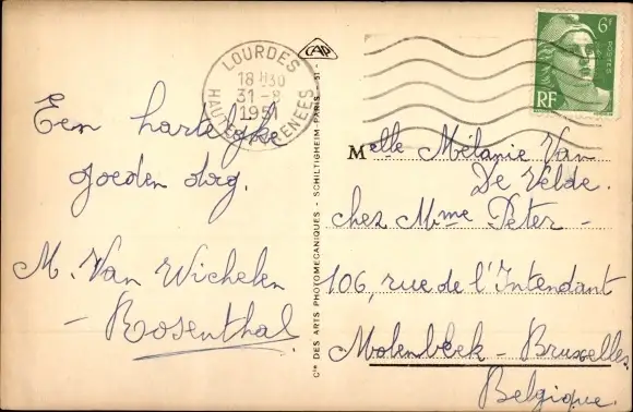 Zustand, siehe Scan, gelaufen, 1951 - ca 14 cm X 9 cm
