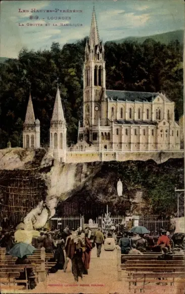 Ak Lourdes Hautes Pyrénées, La Grotte et la Basilique