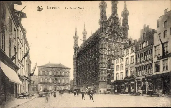 Ak Louvain Leuven Flämisch Brabant, Le Grand Place, Rathaus, Passanten, Geschäfte
