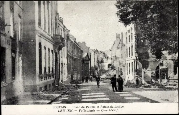 Ak Louvain Leuven Flämisch Brabant, Place du Peuple et palais de justice