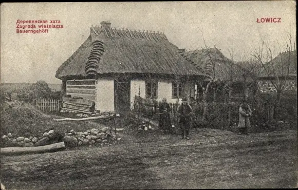 Ak Lowicz Lowitsch Polen, Bauerngehöft