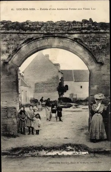 Ak Luc sur Mer Calvados, Entree d'une Ancienne Ferme, Kinderwagen