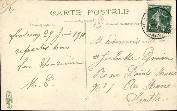 Zustand, siehe Scan, gelaufen, 1910 - ca 14 cm X 9 cm