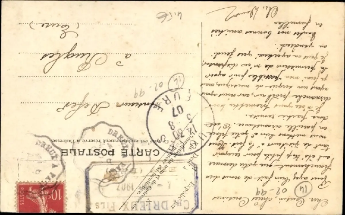 Zustand, siehe Scan, gelaufen, 1907 - ca 9 cm X 14 cm
