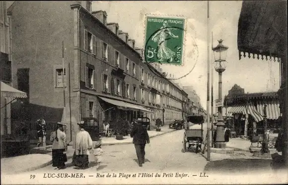 Ak Luc sur Mer Calvados, Rue de la Plage et l'Hotel du Petit Enfer