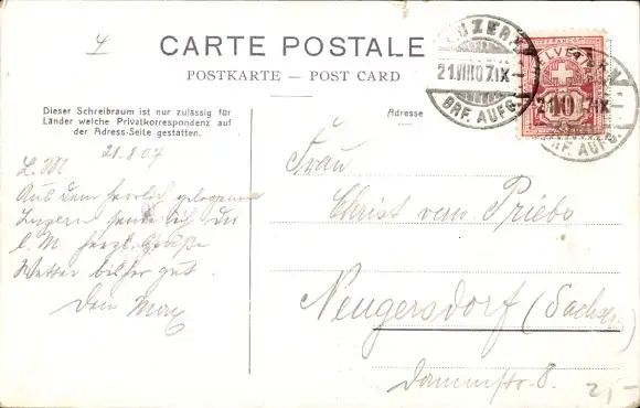 Zustand, siehe Scan, gelaufen, 1907 - ca 14 cm X 9 cm