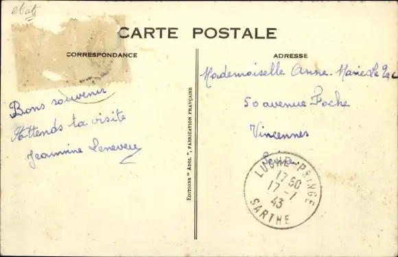 gelaufen 1943, Briefmarke entfernt, sehr guter Zustand