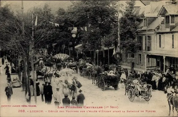 Ak Luchon Haute Garonne, Défilé des Voitures sur l'Allée d´Etigny