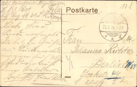 Zustand, siehe Scan, gelaufen, 1916 - ca 14 cm X 9 cm