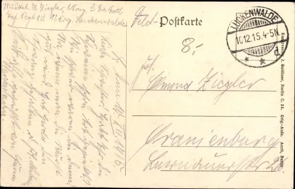 Zustand, siehe Scan, gelaufen, 1915 - ca 9 cm X 14 cm