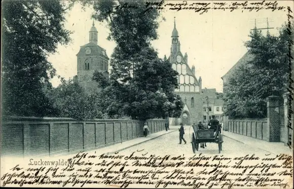 Ak Luckenwalde in Brandenburg, Straßenpartie, Kirchturm