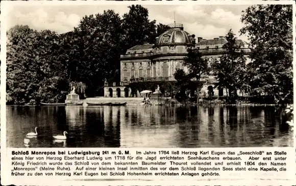 Ak Ludwigsburg, Schloss Monrepos vom Teich aus gesehen