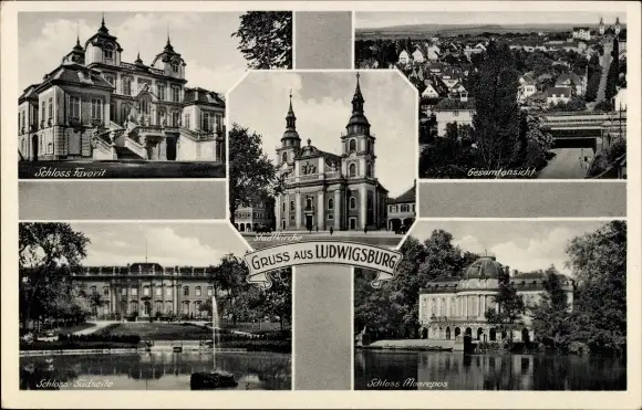 Ak Ludwigsburg in Württemberg, Seeschloss Monrepos, Schloss Favorit, Stadtkirche