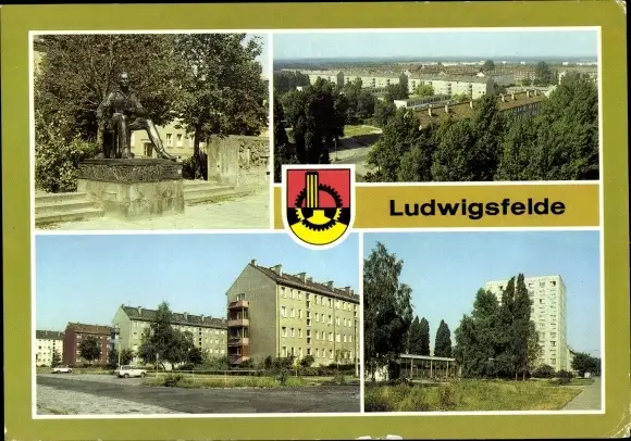 Ak Ludwigsfelde in Brandenburg, Heinrich-Heine-Denkmal, Neubauten, Hochhaus