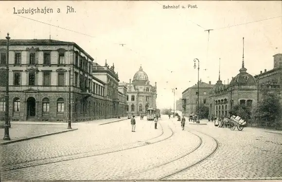 Ak Ludwigshafen am Rhein, Bahnhof, Post, Straßenbahn