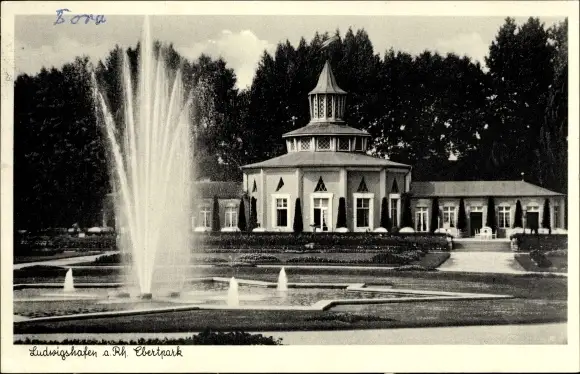 Ak Ludwigshafen am Rhein, Ebertpark, Wasserfontäne