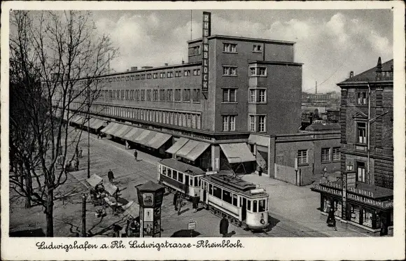Ak Ludwigshafen am Rhein, Ludwigstraße, Rheinblock, Straßenbahn