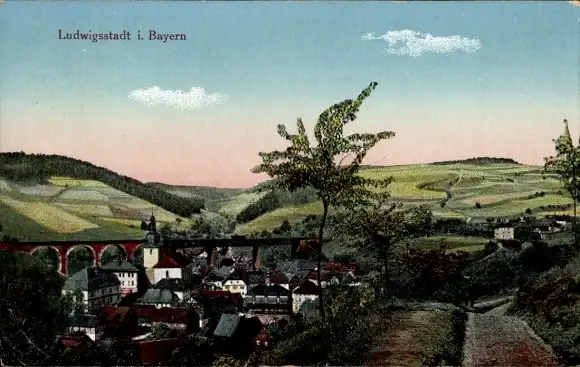 Ak Ludwigsstadt in Oberfranken, Teilansicht mit Viadukt