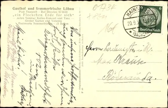Ak Lübau Rabenau Tharandt Erzgebirge, Gasthof Lübau