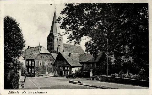 Ak Lübbecke in Westfalen, An der Feuerrinne, Kirchturm