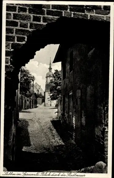 Ak Lübben im Spreewald, Blick durch die Stadtmauer