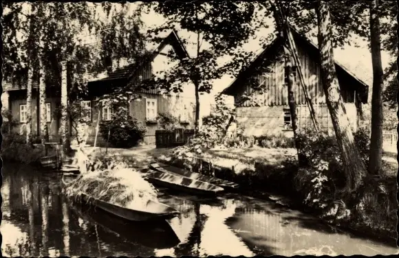 Ak Lübben im Spreewald, Spreewaldpartie, Kähne, Häuser