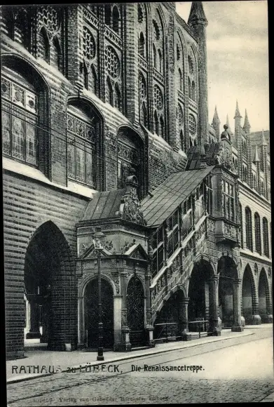 Ak Lübeck, Rathaus, Renaissancetreppe