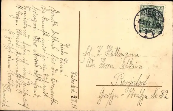 Zustand, siehe Scan, gelaufen, 1913 - ca 14 cm X 9 cm