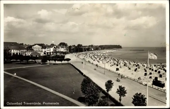 Ak Lübeck Travemünde, Promenade, Strand, Flaggen