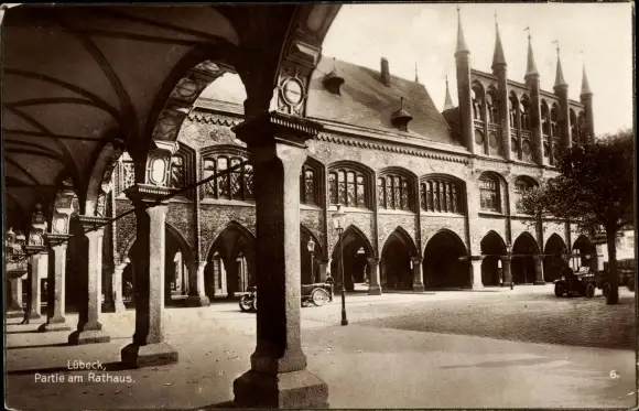Ak Lübeck in Schleswig Holstein, Partie am Rathaus, Autos