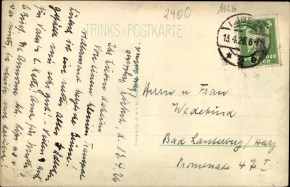 Zustand, siehe Scan, gelaufen, 1926 - ca 14 cm X 9 cm