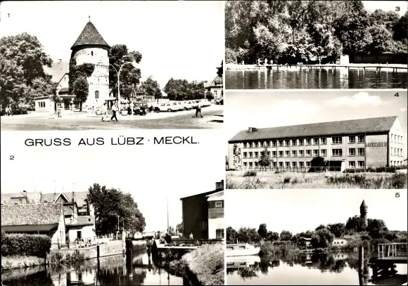 Ak Lübz in Mecklenburg, Wilhelm-Pieck-Platz, Schleuse, Bad, Oberschule III, An der Elde
