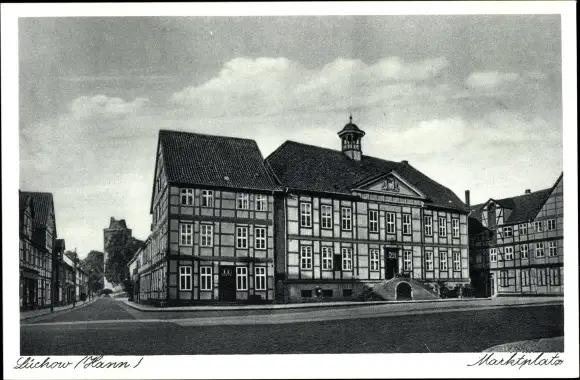 Ak Lüchow im Wendland, Partie am Marktplatz, Fachwerkhäuser