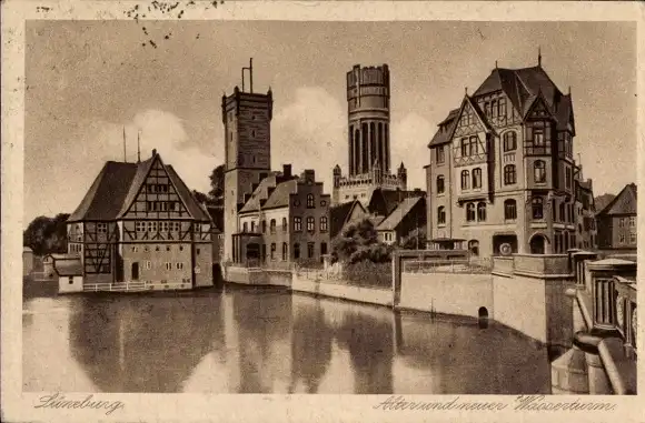 Ak Lüneburg in Niedersachsen, Alter und neuer Wasserturm