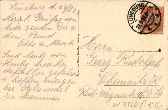 Zustand siehe Scan, gelaufen, 1922 - ca 14 cm X 9 cm
