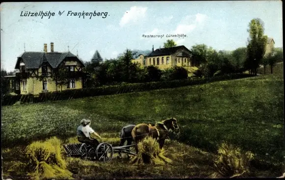 Ak Lützelhöhe Frankenberg an der Zschopau, Restaurant, Feldarbeit