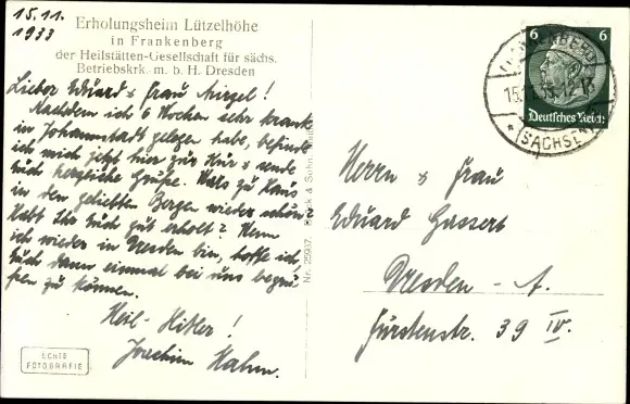 Ak Lützelhöhe Frankenberg in Sachsen, Erholungsheim