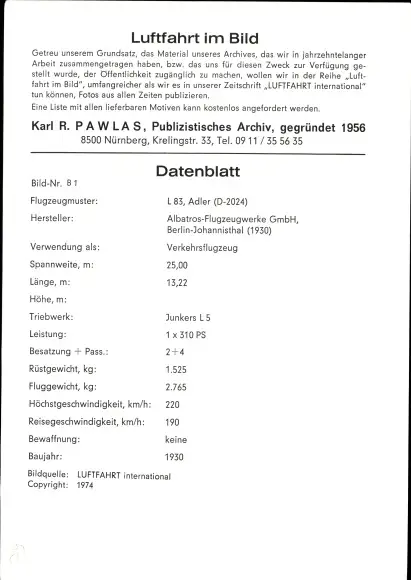 Ak Luftfahrt im Bild, Albatros L 83, Adler, D-2024, Deutsche Lufthansa