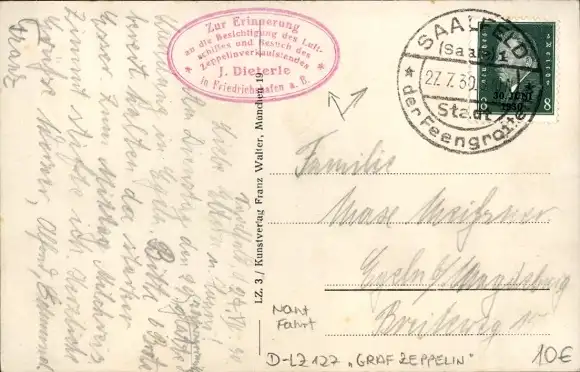 Ansichtskarte, Postkarte, Luftschiff, Zeppelin, Zeppeline, Luftschiffe