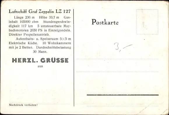 Ansichtskarte, Postkarte, Luftschiff, Zeppelin, Zeppeline, Luftschiffe