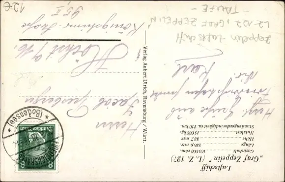 Ansichtskarte, Postkarte, Luftschiff, Zeppelin, Zeppeline, Luftschiffe