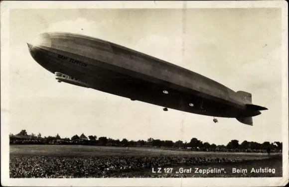 Ak Luftschiff LZ 127 Graf Zeppelin beim Aufstieg