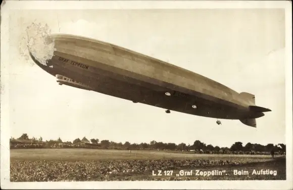 Ak Luftschiff LZ 127 Graf Zeppelin beim Aufstieg