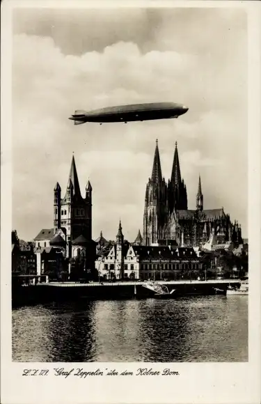 Ak Luftschiff LZ 127 Graf Zeppelin über dem Kölner Dom