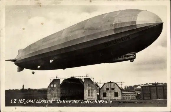 Ak Luftschiff LZ 127 Graf Zeppelin über der Luftschiffhalle