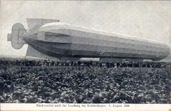 Ak Luftschiff, Zeppelin, Nach der Landung, Echterdingen, 1908