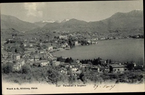 Ak Lugano Kanton Tessin, Paradiso, Gesamtansicht