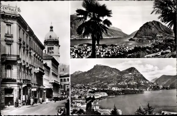 Ak Lugano Kanton Tessin Schweiz, Hotel Centrale, Panorama